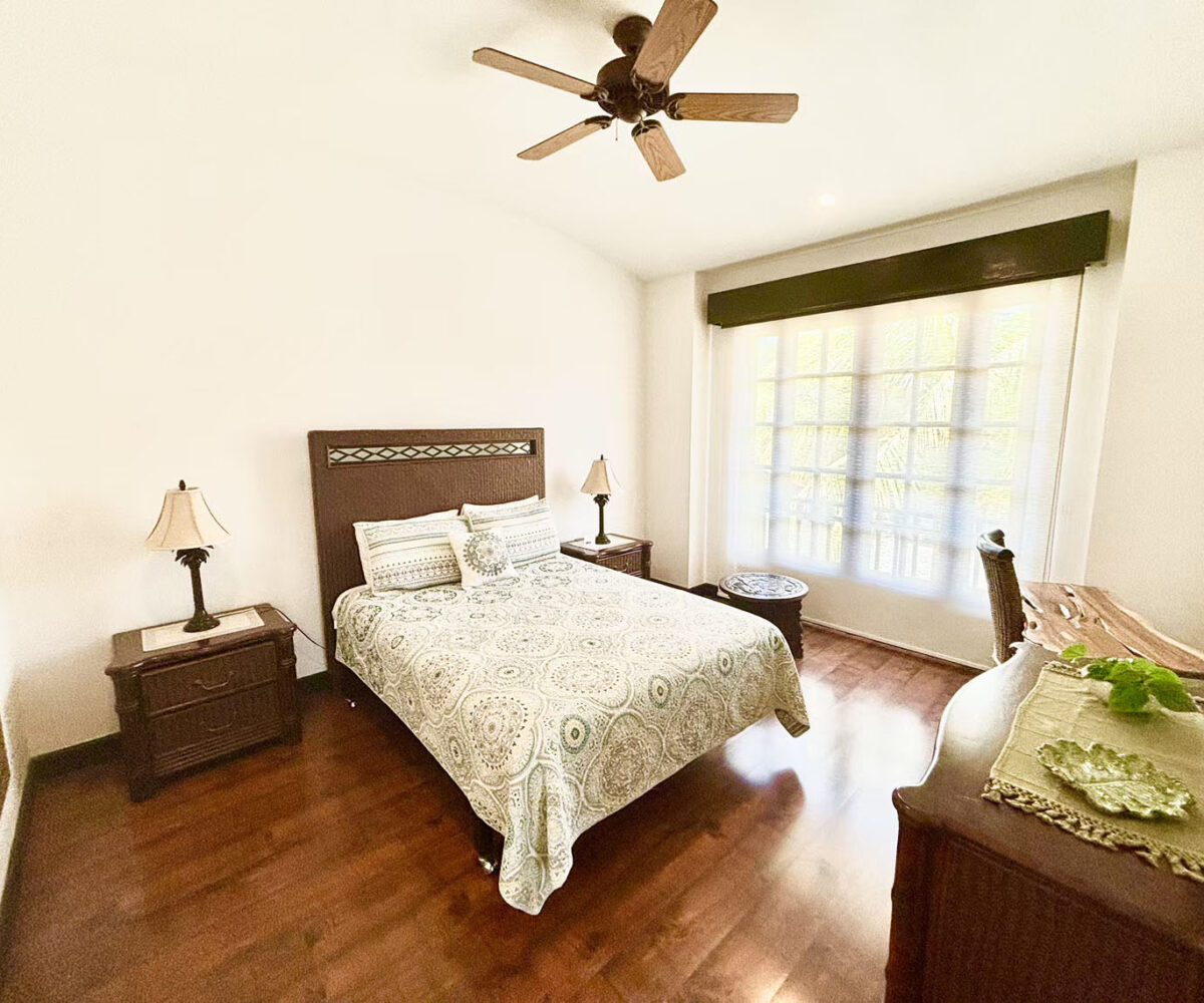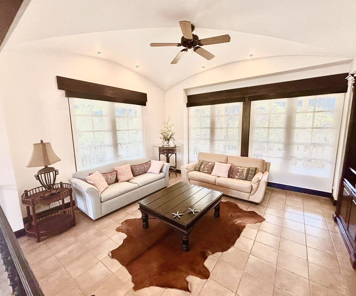 The villa is located just steps from pristine Playa Bonita. It has one ample bedroomon the first floor, and two large bedrooms plus a family room upstairs; every bedroom with en suite bathrooms. It also has wrap around balconies, perfect for bird watching, as well as enjoying the outdoors in a relaxing hammock.