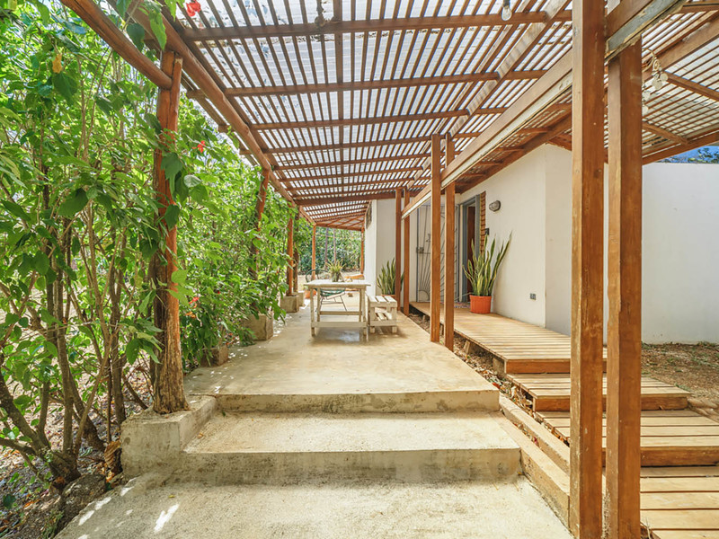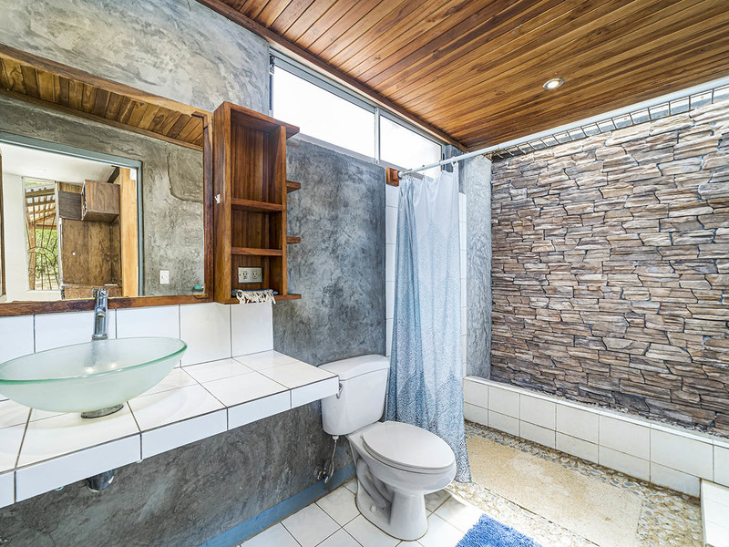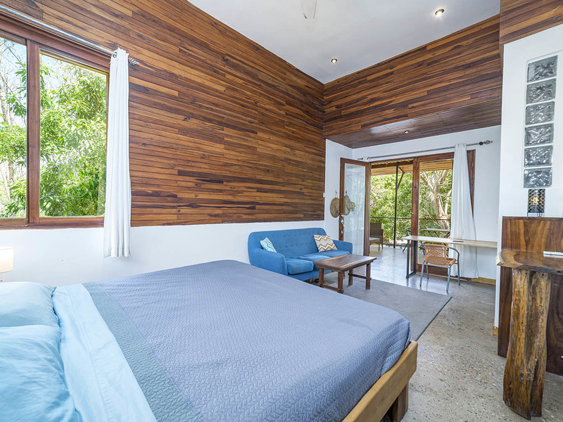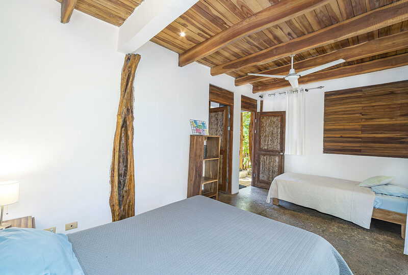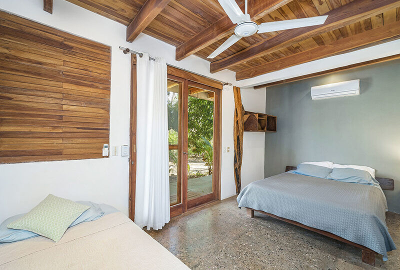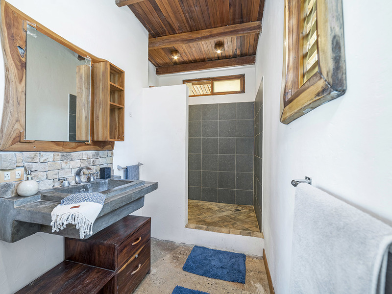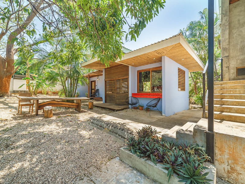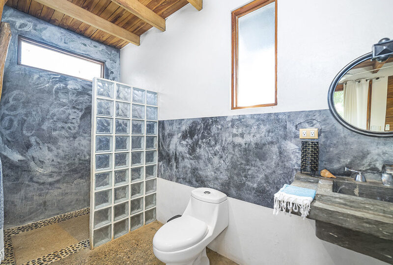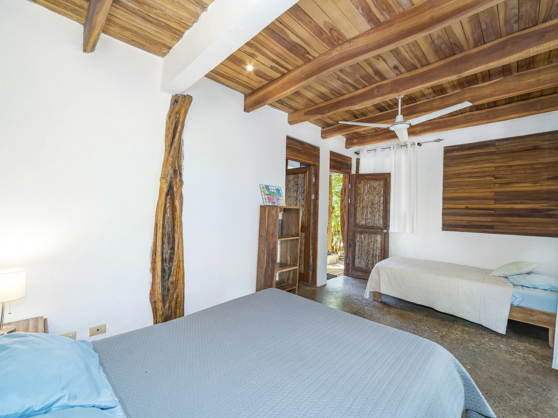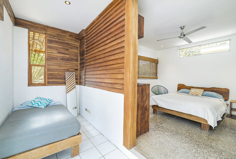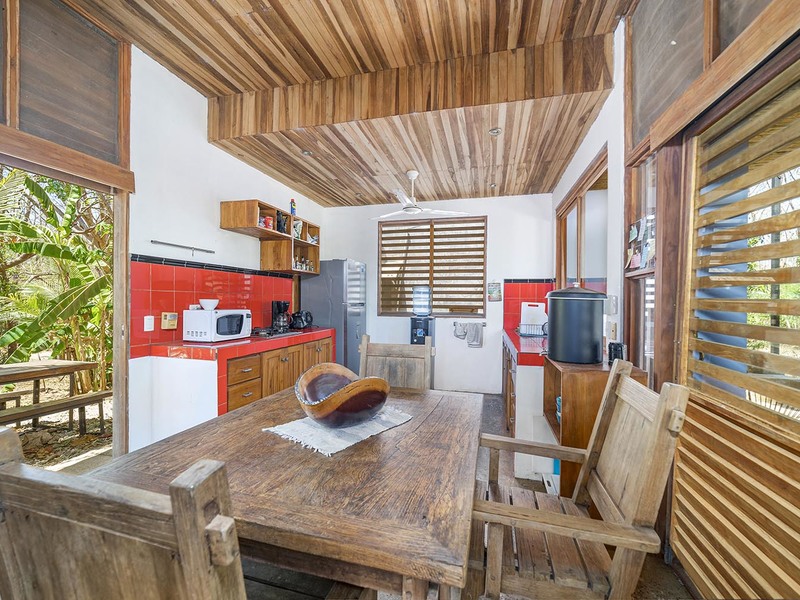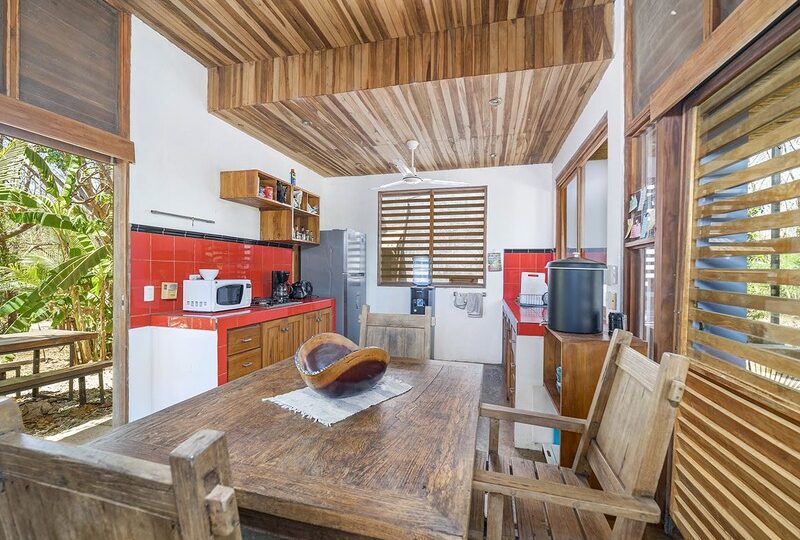 Casa Kaiki features two buildings, each one has its own kitchen, and a total of five spacious bedrooms and five ensuite bathrooms. Built by a local architect in the early 2000s, this property is a true local treasure with its own well and a large concrete water reserve as a back-up. The original idea was to have one building for the owners to live in, and then rent out “cabinas” in this yet undiscovered pristine beach town. Today, the owners use airbnb to rent the rooms on the short-mid and long term.